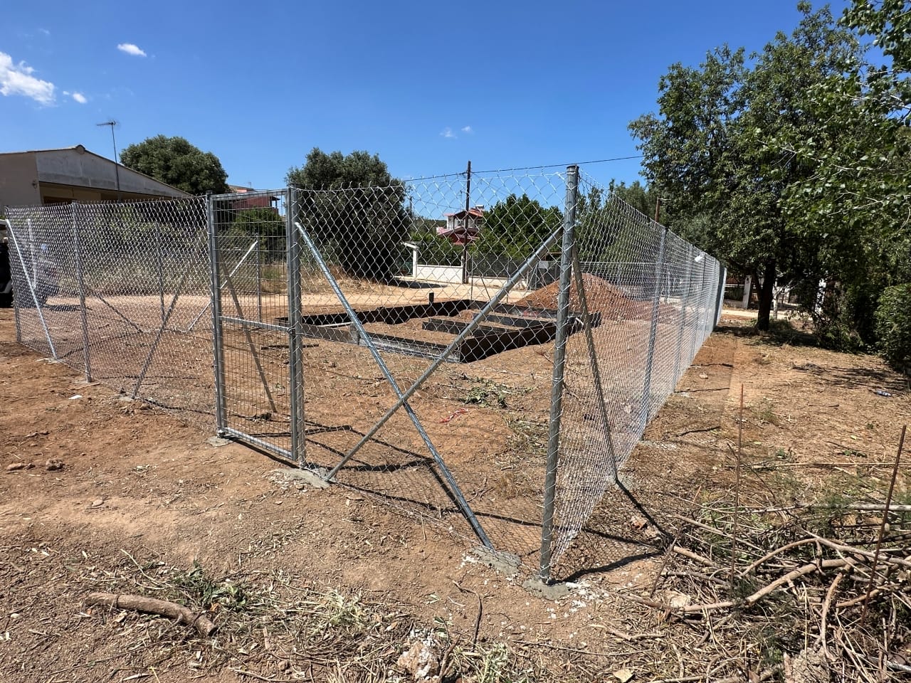Η FenceUp ολοκλήρωσε έργο περίφραξης οικοπέδου στο Πόρτο Ράφτη, χρησιμοποιώντας γαλβανιζέ συρματόπλεγμα ρομβοειδούς μορφής και σωλήνες Φ48 γαλβανιζέ ενισχυμένου τύπου. Η περίφραξη προσφέρει υψηλή αντοχή στη διάβρωση και μακροχρόνια προστασία, εξασφαλίζοντας την ασφάλεια και την οριοθέτηση του χώρου. Επιπλέον, τοποθετήθηκαν δύο πόρτες: μία δίφυλλη ανοιγόμενη πόρτα πλάτους 4 μέτρων για την εύκολη πρόσβαση οχημάτων, καθώς και μία μονόφυλλη πόρτα πλάτους 1 μέτρου για πεζούς.